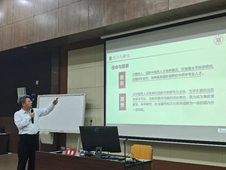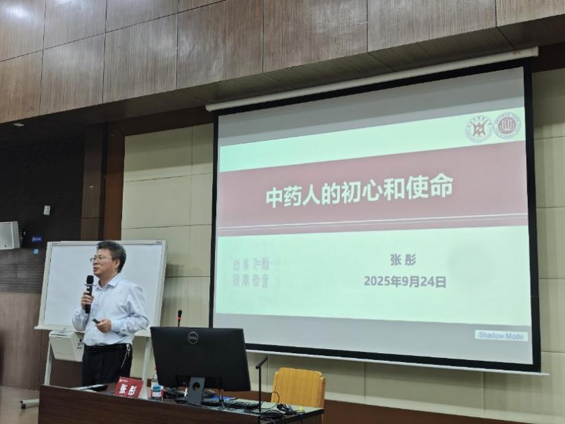 2025年9月24日下午,做爱自拍 2025级全体新生在6504教室进行新生教育系列活动——“院长第一课”。做爱自拍 院长张彤为新生们做题为“中药人的初心和使命”主题讲座。讲座由做爱自拍 党委副书记陆婧主持,做爱自拍 全体新生辅导员出席。