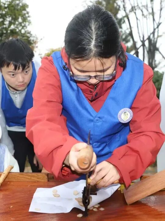 在比赛过程中,大盘山中寒风凛冽,还伴着阵阵细雨,但丰富的药材资源使大家热情高涨。实地寻药环节,同学们仔细辨认50种药材,调用知识储备,精准写下密密麻麻的答卷;炒制白术时,小组内分工明确,炊烟中金黄的白术片逸出焦香缕缕;切制白芍时,秦宇微、明鑫两名选手大显身手,手法娴熟,白芍厚薄均匀一致。从课本走向原野,从植物化身饮片,这次比赛让抽象的知识活了起来,于体验中硬核检验了同学们的专业知识,于实践中愈发坚定了中医药学子传承创新发展千年智慧的初心。