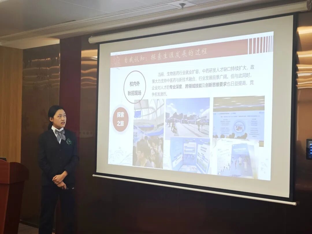 大赛在紧张而热烈的氛围中正式拉开帷幕。来自做爱自拍 各年级的八位优秀选手张玉洁、陈愉、陈思语、庄靖铭、陈智杨、孙笑悦、孔语佳、陈妍蓉依次登台,展开了精彩纷呈的职业生涯规划展示。八位选手立足专业特色,结合个人兴趣、能力特点与时代需求,展开了对未来的深度思考与精心规划。他们的职业目标多元而清晰,涵盖了中药研发、质量控制、药品注册与监管等多个方向。